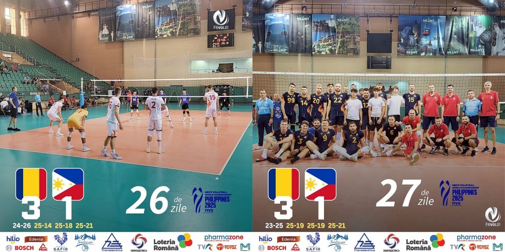 Aflată în pregătirea participării la turneul final al Campionatului Mondial, care va avea loc luna viitoare, echipa masculină de volei a României a susținut trei meciuri de pregătire în compania formației similare din Filipine. Tricolorii s-au impus de fiecare dată cu 3:1. Naționala noastră are ca obiectiv să treacă de faza grupelor CM, competiție la care s-a calificat după o pauză de 43 de ani.